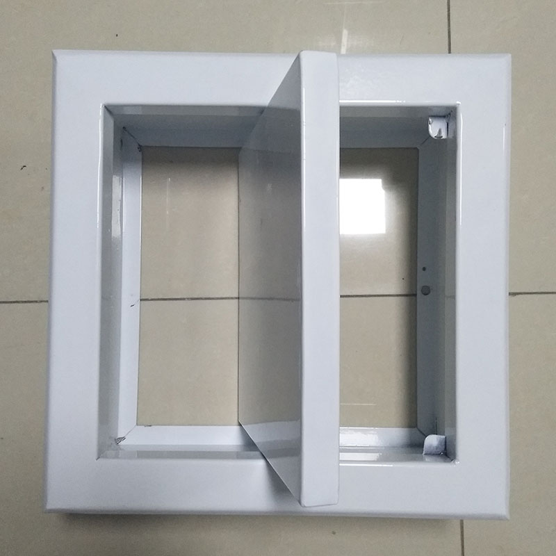板式排煙口,安裝在走道或(huò)防煙前室,無窗房間的排煙係統的排煙口處,可以吊(diào)裝在天花板上或安(ān)裝在側牆。