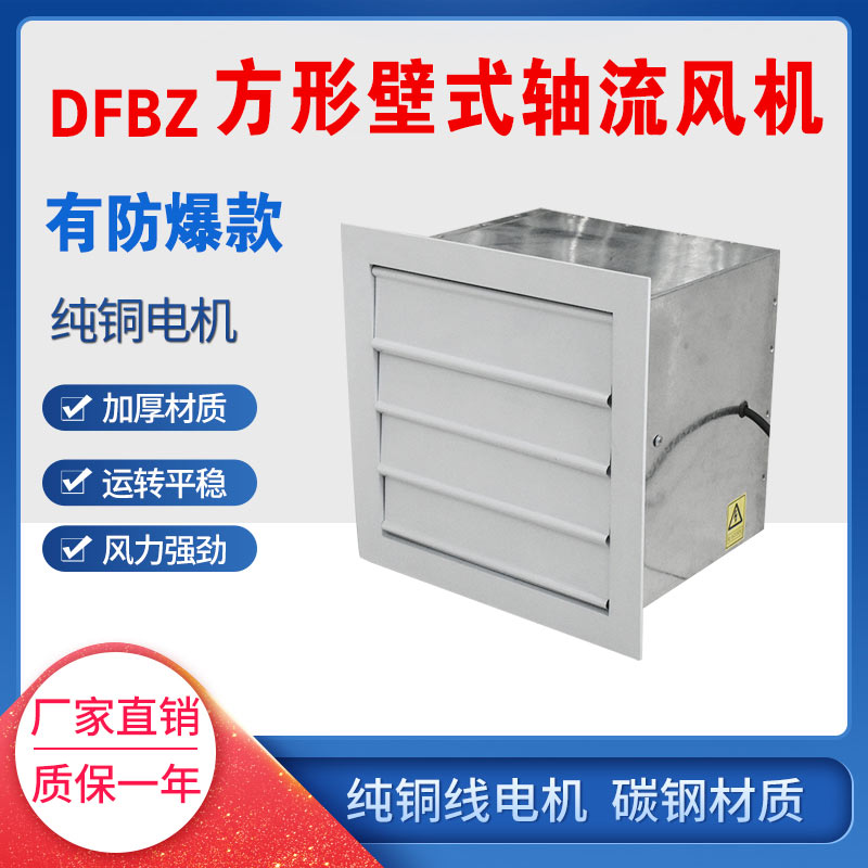 方形軸流風機簡稱DFBZ係列風機,它是采用低噪聲風機專用電機直(zhí)聯傳動;整機製成方形,外形美觀,牆體預留方孔安裝方便; 出風口裝有自垂百(bǎi)葉, 以防(fáng)止室外雨水和自然風向室內(nèi)倒灌。