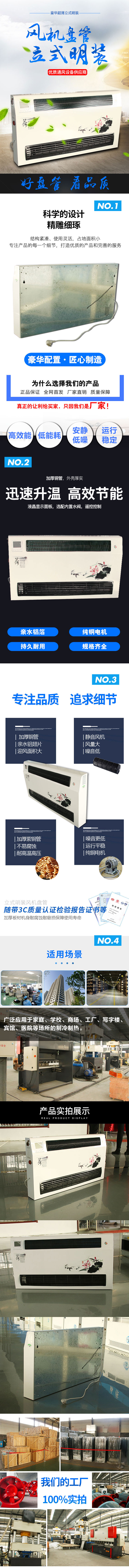 立式明裝風機盤(pán)具(jù)有管效率(lǜ)高,能量(liàng)足(zú),風量大,噪音低(dī),安全可靠,壽命長的優點,是明(míng)裝風機盤(pán)管。盤管采用優質(zhì)無縫紫銅(tóng)管與鋁質正弦波紋型散熱片(piàn),經過液壓或機械漲管而成(chéng)。