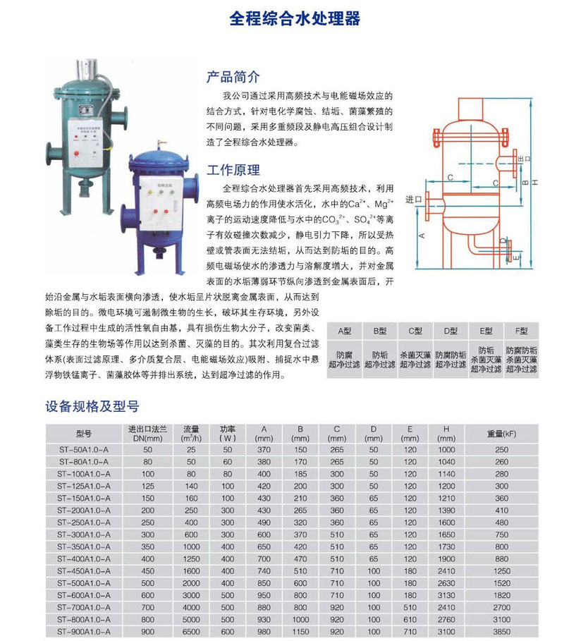 全程綜合水處理器是采用高頻技術與電(diàn)能磁場效應(yīng)的結合方式,主要針對電化學腐蝕、結垢、菌藻繁殖的不同問題(tí),並采(cǎi)用多(duō)重頻段及靜電高壓組合的方式研製而成。